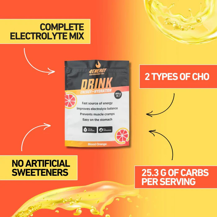 A 4Energy Drink egy frissítő izotóniás sportital, amelyet állóképességi sportolók számára terveztek, akiknek gyors energialöketre és megbízható hidratálásra van szükségük intenzív edzés / versenyzés során.